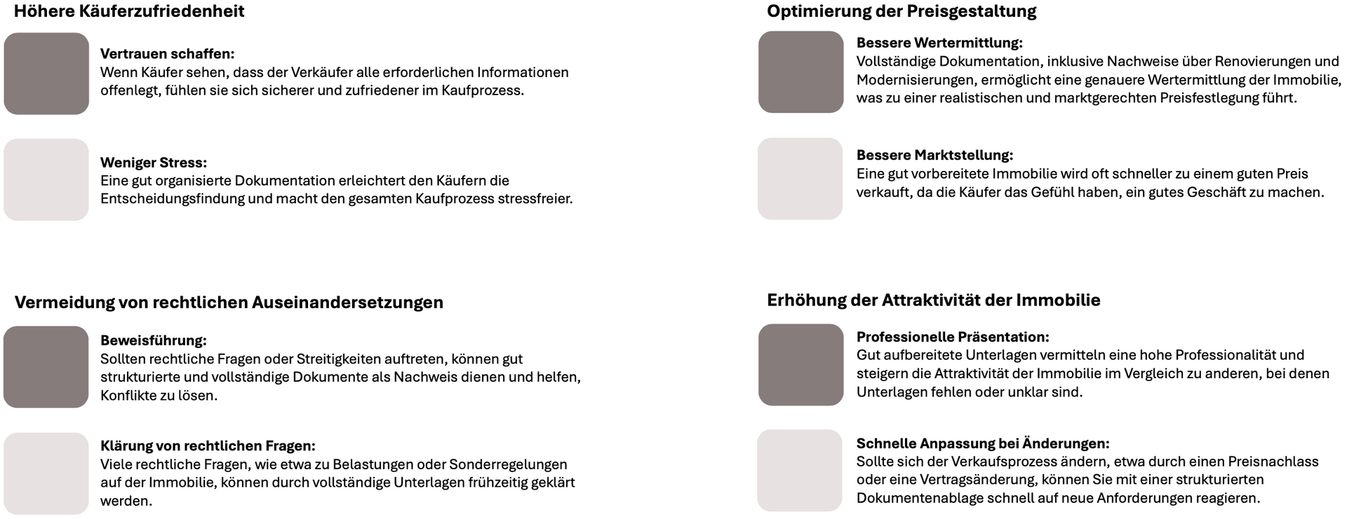 Eine vollständige Dokumentation reduziert Rückfragen und beschleunigt den gesamten Verkaufsprozess.