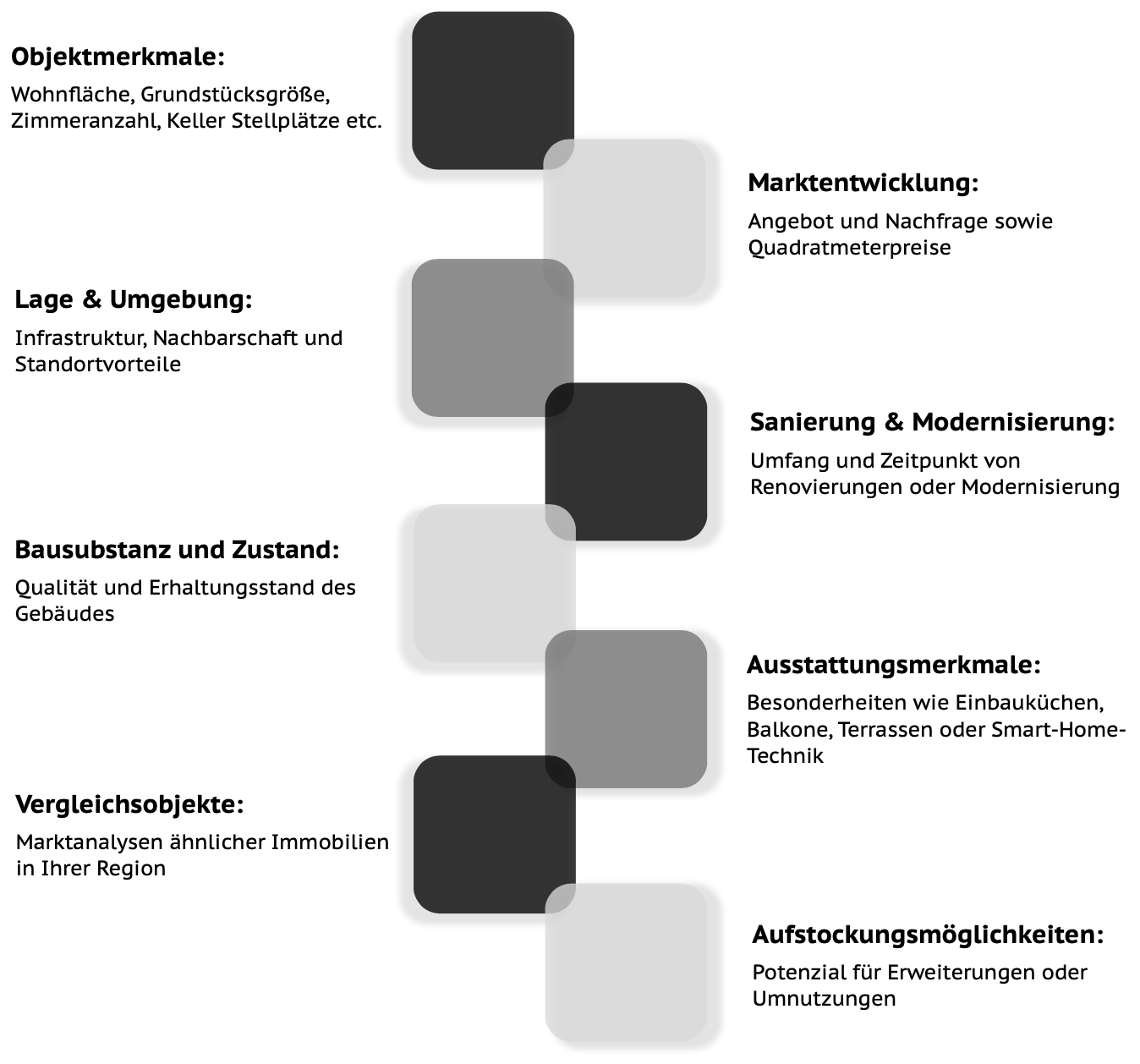 This creates a precise picture of the market value, which forms the basis for a realistic and market-based selling price. To give you a rough overview, we have listed the most important aspects point by point below.